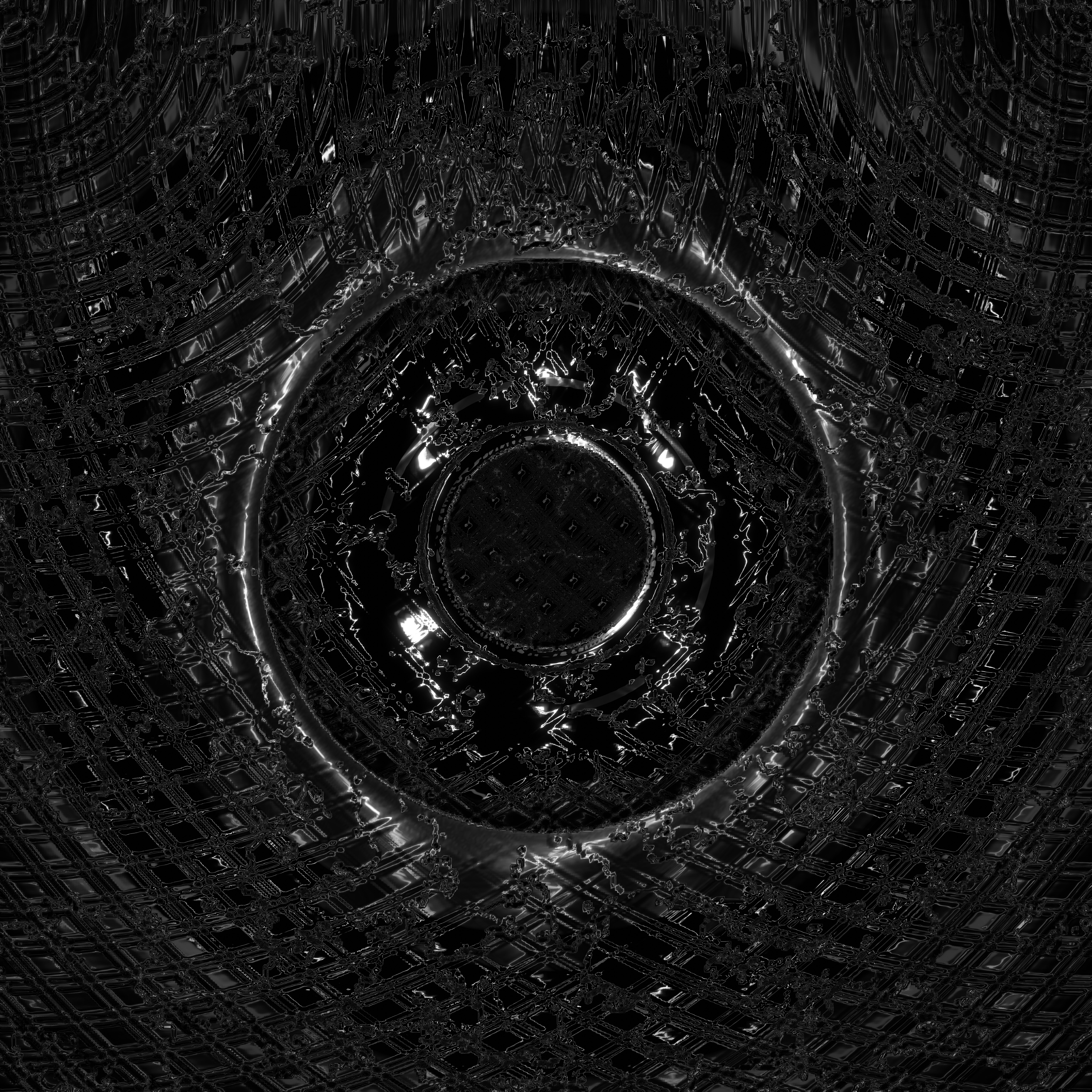 Kneeling and hunched, the angelic body rises, burnt and smoking from the fall. When it first moves, it becomes a chorus of many motions. Ribs bend outward, exposing the torso’s open beating heart that emits rays of light. Droplets of thick white fluid exude from countless holes perforating its grey husk. A single eye adorns the head, and the head splits at the crown into twin, horn-like ridges. The angel breathes in heavy, wet gulps, with an awful sound, more like retch than breath.