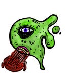 It is smaller than an angel but no less horrifying: a mass of slick grey flesh studded with ever-watching eyes and many dagger-tipped limbs. The woman collapses in dread and pain. At once, her frame is crushed and absorbed into the spawn’s glistening bulk, using the cord as a rope, tearing it off after the transmutation is done. The being is fully sated, for now.